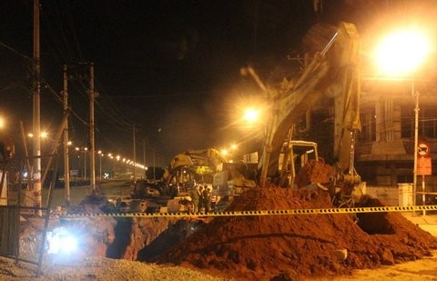 Tại hiện trường, trên thảm cỏ ngay giao lộ Võ Văn Ngân – Nguyễn Văn Bá (P. Bình Thọ, Q. Thủ Đức TP.HCM) chúng tôi ghi nhận một hố đào dài khoảng 30m rộng 6m và sâu 6m. Nơi đây là công trường thi công đường ống cấp nước D2400 do Tổng công ty cấp nước (Sawaco) làm chủ đầu tư.