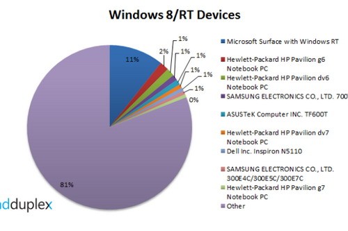 Theo AdDuplex, họ đã nhận thấy lưu lượng truy cập mạng đáng kể từ 3.000 mẫu Surface chạy Windows 8 và Windows RT khác nhau chỉ trong một ngày, và thống kê cho thấy chiếc tablet của Microsoft đã chiếm 11% trong tổng lưu lượng các thiết bị.