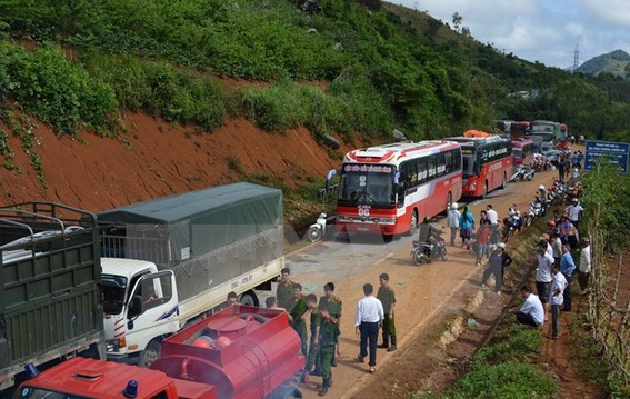 Các lực lượng chức năng của tỉnh Sơn La đang huy động xe phun nước để rửa bề mặt đường, đồng thời phân luồng giao thông để nhanh chóng thông xe trong thời gian sớm nhất.