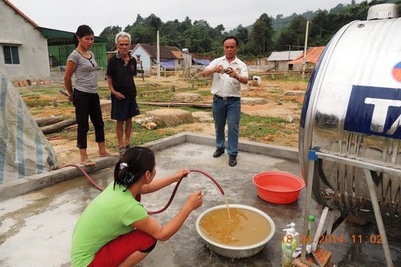 Để khắc phục tình trạng dân không có nước sạch ở khu tái định cư, ông Trần Ngọc Hùng cho biết: UBND tỉnh giao sở Tài nguyên môi trường chủ trì, phối hợp các sở, ban, ngành có hướng khắc phục. Sở, ban, ngành kiến nghị UBND tỉnh, trước mắt mua cho mỗi hộ có giếng bị hỏng một thùng 1000 lít (trị giá 3 triệu), để tích nước mưa hoặc xin nước từ giếng dùng được về dùng. Hỗ trợ mỗi hộ có giếng bị hỏng một bể lắng lọc hoặc giếng khơi, trị giá 5-6 triệu đồng. Về lâu dài, kính đề nghị UBND tỉnh đầu tư xây dựng hệ thống nước tự chảy. UBND tỉnh Hà Tĩnh đã có văn bản giao UBND huyện Vũ Quang chọn phương án hỗ trợ phù hợp. Khi phóng viên đặt vấn đề, lúc nào thì một trong 3 phương án khắc phục trên được thực hiện? Thì ông Hùng chần chừ và nói “đang tiến hành tổ chức khắc phục, nhưng bao giờ thì không biết”. Như vậy, đồng nghĩa dân ở 2 khu tái định cư của xã Hương Điền và Hương Quang còn phải chờ dài về vấn đề nước sạch.