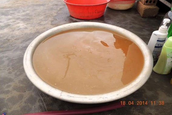 Giếng Hộ Bùi Thị Ngọc bơm lên có màu vàng như bùn...