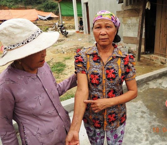 Bà Vi Thị Huệ (63 tuổi) thì cho rằng: Dân đây khổ lắm chú ạ, từ ngày về đây toàn thân bà bị nổi mẩn ngứa.