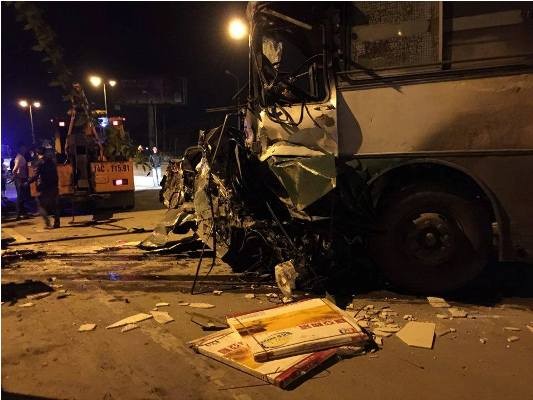 Vụ tai nạn giao thông trên xảy ra vào khoảng 21 giờ 30 tối ngày 7/12, gần trạm thu phí cầu Bãi Cháy (Quảng Ninh). Theo một số nhân chứng có mặt ở hiện trường, chiếc xe tải chở gạch men cũ bỗng dưng mất lái lao sang làn đường ngược chiều, đâm vào xe khách Đức Phúc BKS 14B - 014.14, rồi tiếp tục đâm vào chiếc xe ô tô 4 chỗ màu đen hiệu Toyota Camry mang BKS 30A - 811.32, rồi lao thẳng vào taluy bên đường.