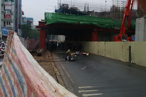 Khối cốp pha sắt rơi trúng 3 xe máy đang lưu thông trên đường Nguyễn Trãi, theo hướng Ngã Tư Sở - Hà Đông. Hậu quả làm 1 người chết tại chỗ, 2 người bị thương nặng, được đưa đi cấp cứu trong tình trạng nguy kịch. Thông tin sơ bộ cho biết, nạn nhân tử vong là học viên của Học viện An ninh, thường trú tại Gia Lâm - Hà Nội.