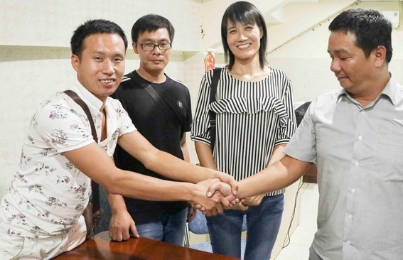 Nhóm khách Trung Quốc để quên ví cám ơn bác tài Thiện. Ảnh: K.A