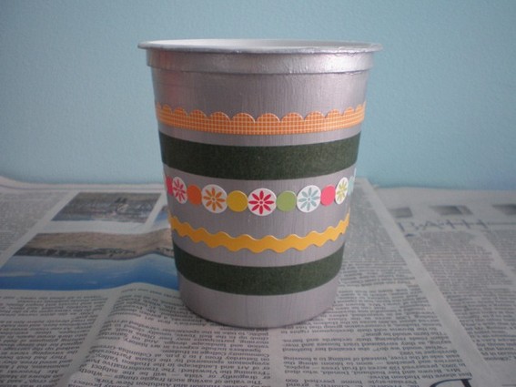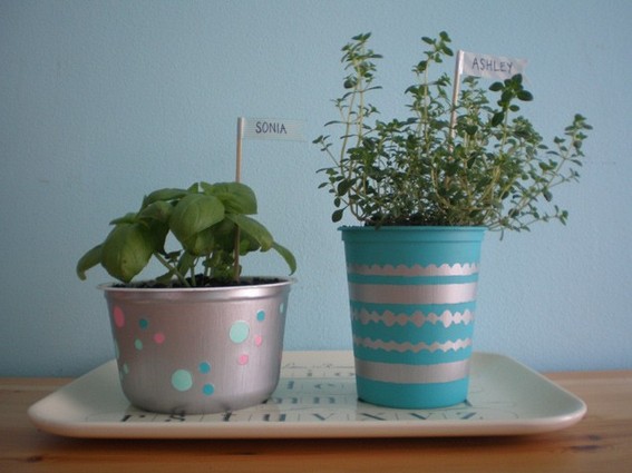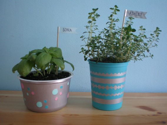 Gỡ những mảnh giấy dán ở thành chậu và trồng những loại cây mà bạn yêu thích để có góc nhỏ ấn tượng bởi sắc xanh tươi của cây cối.