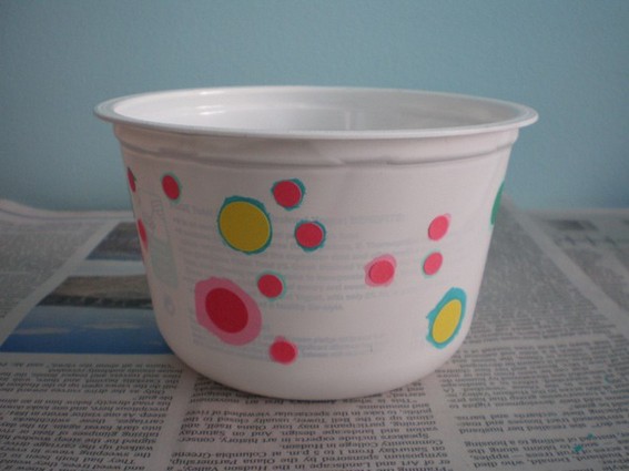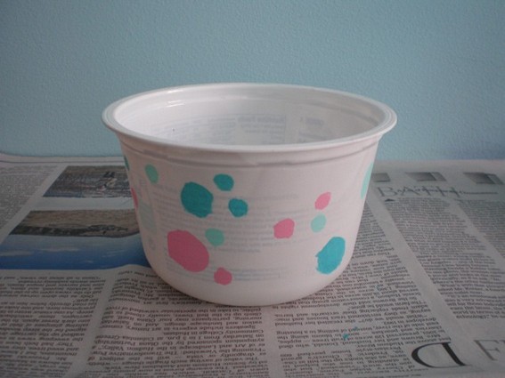 Để tạo sự sinh động cho những chậu cây, bạn có thể dùng những lọ sơn nhỏ nhiều màu sắc để chấm lên chậu cây.