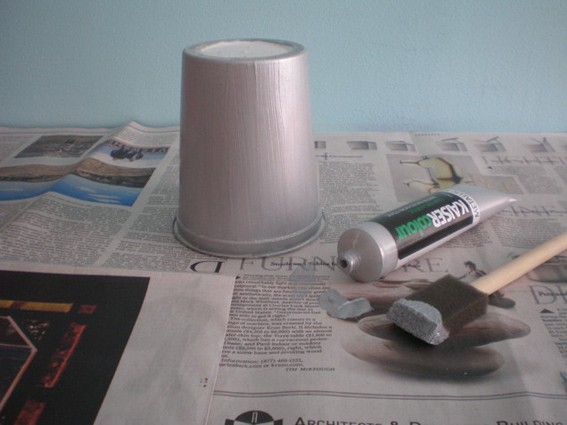 Dùng xốp quét đều sơn màu ghi lên chiếc chậu tiếp theo.