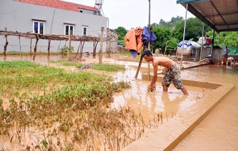 Cùng cảnh chăn nuôi bị thiệt hại như nhà bà Thung, nhà ông Nguyễn Văn Thành (tổ 30, khu 3, Hà Trung) ngay trong đêm 3.8, hơn 100 con gà, vịt, ngan, ngỗng bị vỡ chuồng chạy tan tác. Sáng 4.8, ông Thành chỉ biết ra vườn thẫn thờ đứng nhìn cảnh gà, vịt bị bùn nước vùi chết.