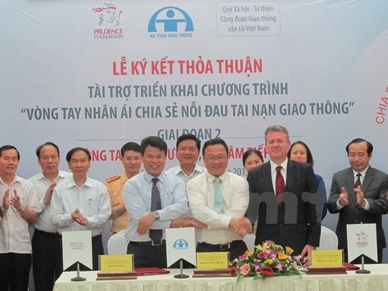 Đây là thỏa thuận tài trợ triển khai Chương trình “Vòng tay yêu thương-An tâm tiếp bước”giai đoạn 2 của dự án “Vòng tay nhân ái chia sẻ nỗi đau tai nạn giao thông” do Ủy ban An toàn giao thông Quốc gia vừa phối hợp với Quỹ Prudence, Công ty Trách nhiệm hữu hạn Bảo hiểm nhân thọ Prudential Việt Nam và Quỹ Xã hội từ thiện Công đoàn Giao thông vận tải Việt Nam vừa được ký kết vào chiều nay (28/5).