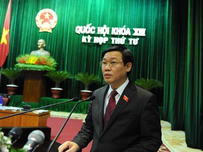 Bộ trưởng Vương Đình Huệ trình bày báo cáo dự toán ngân sách 2012.