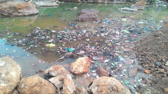 Hình ảnh được người dân ghi nhận vào ngày 19/6/2015 sau khi phát hiện xe tải đổ rác thải xuống khu vực đang được san lấp