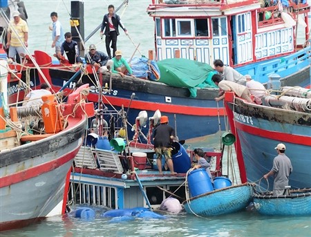 Nhiều tàu ngư dân tham gia trục vớt.