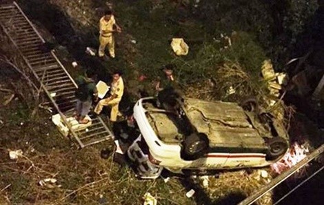 Đến giữa cầu, tài xế đánh lái để tránh nhóm thanh niên chạy ngược chiều nên mất kiểm soát, lao lên vỉa hè, tông gãy lan can rồi rơi xuống cầu ở độ cao gần 10 mét.