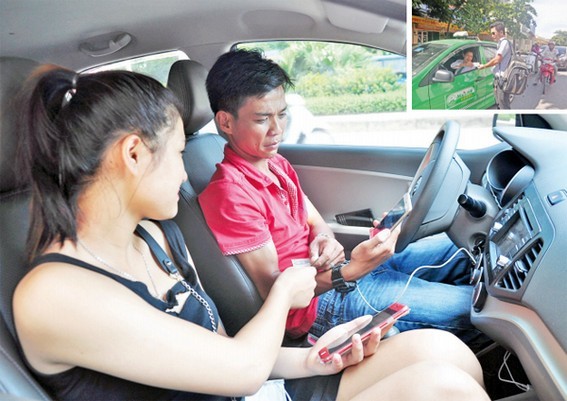 Sự phát triển mạnh mẽ của Uber và Grab khiến taxi truyền thống gặp khó khăn và buộc phải tìm giải pháp mới để duy trì, phát triển - Ảnh: Tạ Tôn
