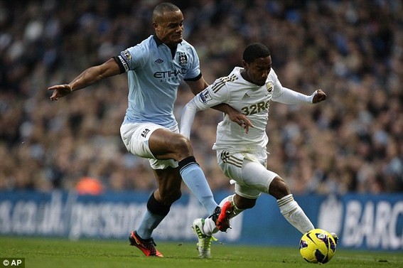 Pha lập công duy nhất của tiền đạo Carlos Tevez ở giữa hiệp hai đã giúp Man City nhọc nhằn vượt qua Swasea với tỷ số 1-0. Chiến thắng này giúp The Citizens thu hẹp khoảng cách với đội đầu bảng Chelsea xuống còn 1 điểm.