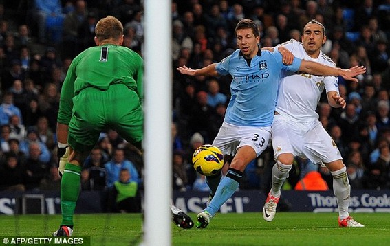 Hơn 20 phút thi đấu đã trôi qua nhưng Man City vẫn chưa thể tung ra bất cứ pha dứt điểm nào về phía khung thành của Swansea. Phần lớn những nỗ lực đột phá cá nhân của Tevez, Aguero hay Nasri đều dễ dàng bị hàng thủ đội khách hóa giải. Phút 36, thủ thành Vorm mắc sai lầm khi chuyền bóng đến thẳng chân của Tevez nhưng tiền đạo người Argentina đã không thể tận dụng thành công.