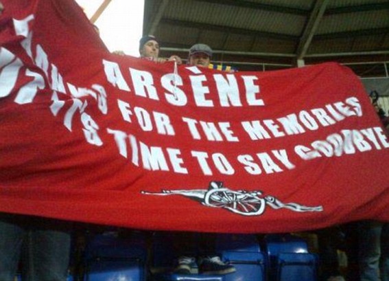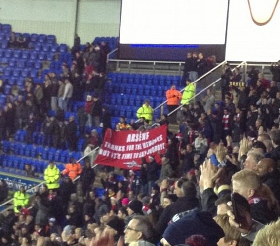 Khi tiếng còi kết thúc trận đấu vang lên với kết quả vượt trội dành cho Arsenal, một bộ phận Gooners vẫn giơ cao biểu ngữ phản đối Wenger. Nội dung rất rõ ràng, đã đến lúc Pháo thủ chia tay vị HLV của mình.