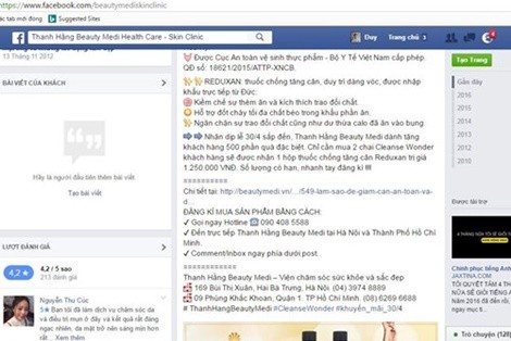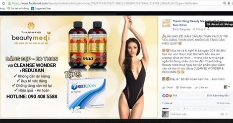 Thời gian gần đây, trên trang web và facebook của Thẩm mỹ viện Thanh Hằng Beauty Medi (beautymedi.vn) địa chỉ tại 169 Bùi Thị Xuân, Hai Bà Trưng (Hà Nội) liên tục xuất hiện thông tin quảng cáo sản phẩm “thuốc” REDUXAN được giới thiệu là “chống tăng cân”, nhập khẩu từ Đức.