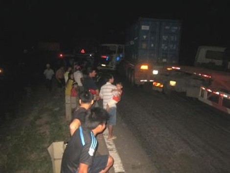 Theo nhiều nhân chứng có mặt tại hiện trường cho biết, vào thời gian trên, chiếc xe đầu kéo mang BKS 51C-241.32 lưu thông theo hướng Nam – Bắc, khi đến địa phận trên thì mất lái, đâm xuống mương nước bên đường. Đúng lúc này có 2 chiếc xe đầu kéo mang BKS 51C-048.15 và 50KT-240.45 chạy tới tông thẳng vào.