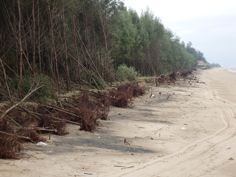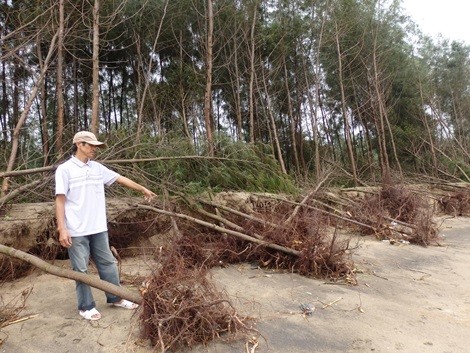 Những cây phi lao chắn sóng còn sót lại nằm ngổn ngang. Ảnh N.Hưng.