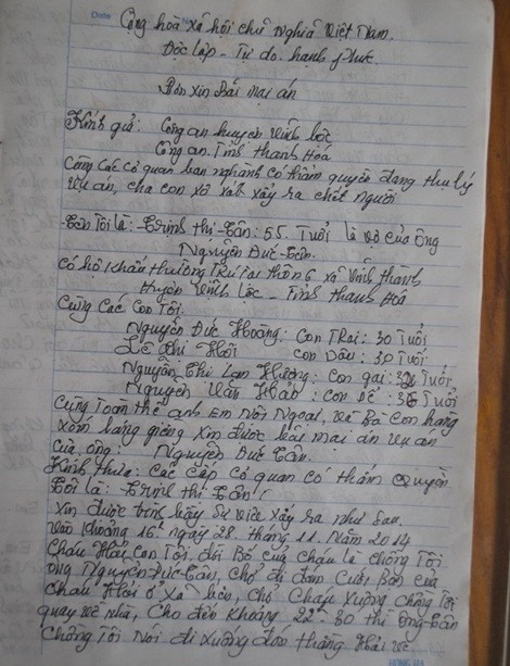 Hay tin gia đình nạn nhân làm đơn, hàng xóm xa gần rất ủng hộ. Họ tình nguyện ký xác nhận gửi tới cơ quan điều tra.