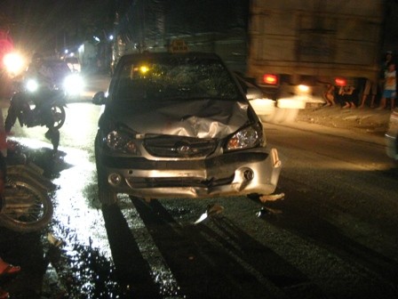 Ngoài ra, do tránh xe máy đi ngược chiều, tài xế xe taxi đã áp sát vào lề đường đụng phải một xe máy đi cùng chiều, khiến người phụ nữ này ngã vào lề đường và bị thương nhẹ.