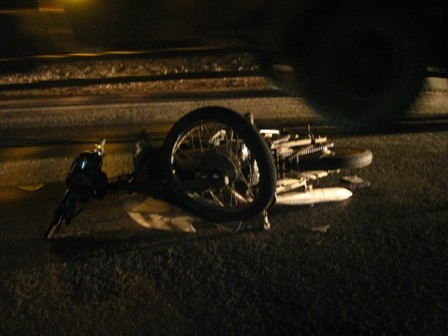 Xe máy hư hỏng nhiều bộ phận nằm giữa đường. Ảnh: Văn Thanh