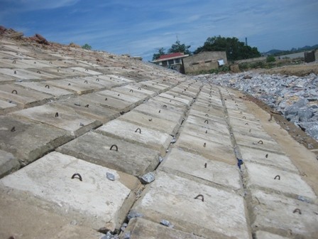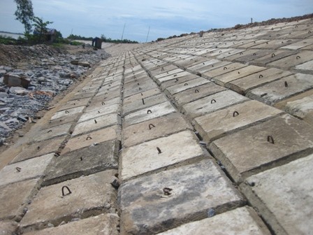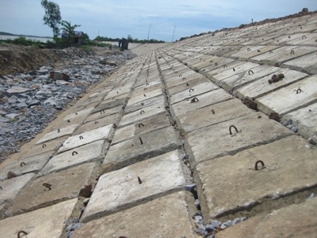 Các tấm kè không bảo đảm đã được đơn vị thi công khắc phục. Ảnh: Văn Thanh