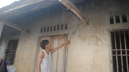 Việc nổ mìn khai thác đã làm rạn nứt nhà dân. Ảnh: Văn Thanh