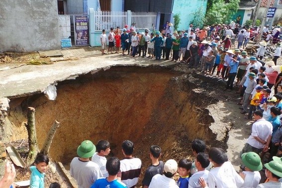 Trước đó, ngày 28/10, tại thôn 2, xã Quý Lộc, huyện Yên Định bất ngờ xuất hiện một hố sụt lún rộng 12m, sâu hơn 25m. Đây là hiện tượng lạ, lần đầu xất hiện tại địa phương.