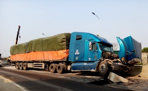 Xe container nát phần đầu