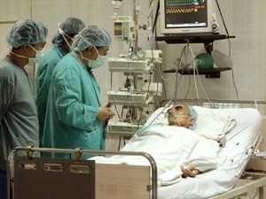 Bác sỹ của Bệnh viện Hữu Nghị Việt - Đức kiểm tra sức khỏe của bệnh nhân được ghép tim thành công. Ảnh: Dương Ngọc/TTXVN