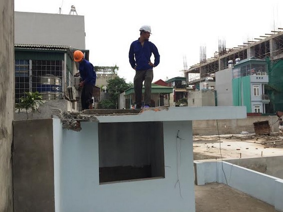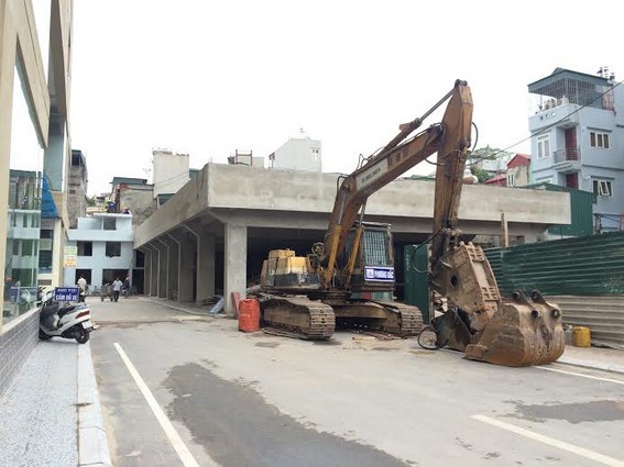 Ghi nhận của phóng viên tại hiện trường, phía chủ đầu tư đã huy động nhiều công nhân cùng với máy xúc, khoan và các phương tiện phá dỡ tại khu nhà 3 tầng chưa đưa vào sử dụng. Tại diện tích nhà 1 tầng phía bên cạnh, công nhân đang thu dọn bên trong để thuận tiện cho máy xúc vào phá dỡ. Riêng khu vực tòa nhà 3 tầng sai phạm được chủ đầu tư dùng làm nơi làm việc của Ban quản lý, chủ đầu tư đang xin giữ lại đến năm 2017 để hoàn thành các công trình nên chưa tự phá dỡ.