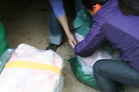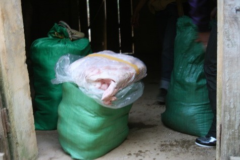 Nội tạng bẩn đang được đóng bao, chờ chuyển về xuôi