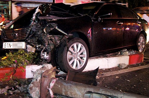 Nhiều nhân chứng cho hay, thời điểm xảy ra vụ tai nạn, chiếc Lexus chạy với tốc độ khá nhanh. Khi ôtô tông vào biển báo thì túi khí đã bung ra nên lái xe không bị thương. Phần đầu chiếc Lexus bị hư hỏng nặng.