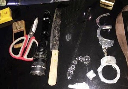Qua kiểm tra, các chiến sỹ phát hiện trên xe chở theo 4 nam thanh niên xăm trổ đầy mình cùng 1 cô gái. Phía sau ghế lái có 1 khoá số 8 được cất giấu, ở trong cốp xe cạnh ghế lái có 1 coóng dùng để sử dụng ma tuý đá, 1 dao dài sắc nhọn khoảng 30 cm.