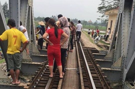 4 nữ sinh rủ nhau lên đường ray tàu để chụp ảnh, đúng lúc đoàn tàu hỏa lao đến tông 1 nữ sinh rơi xuống sông rồi tử vong.