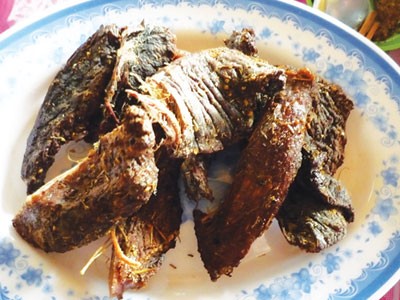 Tần Ê Loan thổ lộ với tôi như vậy về đặc sản Tây Bắc quê hương cô, cùng lúc đưa tôi ra gian bếp ám khói nhà mình. Không gian khá tăm tối nhưng lại ấm áp và thơm mùi thơm lạ kỳ toát ra từ những tảng thịt treo tòn ten trên bếp. Ê Loan với tay lấy một tảng thịt đen ngòm, rồi kéo tôi vào ngồi cùng gia đình cô trong bữa cơm chiều. Cô xé từng miếng bự thịt trâu đưa tôi, bảo chấm vào chén chéo. Tôi làm theo, chỉ mới đưa lên miệng mùi thơm của chéo đã lan tỏa khắp khứu giác. Miếng thịt trâu đen đủi, khô khốc tưởng nhám xàm nhưng càng nhai càng nghe mùi thơm, cay, chua, mặn, ngọt đằm thắm miệng lưỡi ngào ngạt hương vị hoang dã núi rừng, lại có lẫn mùi khó tả của khói bếp. Ê Loan bảo thịt trâu gác bếp phải ăn từng miếng xé to mới tiết ra vị ngọt như thế. Rồi cô rót đầy chén rượu ngô đặc sản lừng danh Tây Bắc cho tôi. Chiêu ngụm rượu màu vàng chanh, tôi cảm nhận mùi thơm của ngô hòa vị ngọt vị cay men rượu lan tỏa khắp người, vô cùng sảng khoái...