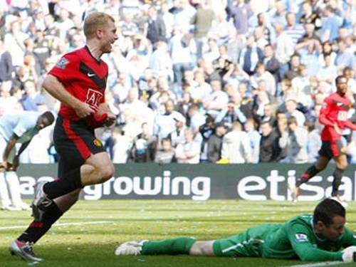 Tháng 4/2010, trong trận đấu ở City of Manchester (nay là Etihad), hai đội đã chơi một thế trận chắc chắn và bịt kín đường vào khung thành của nhau. Những tưởng trận đấu sẽ kết thúc với tỷ số hòa 0-0 thì đúng vào phút 90+3, Scholes ghi bàn sau pha băng vào rất nhanh để đón đường phạt góc của đồng đội bên cánh phải, trừng phạt khoảnh khắc thiếu tập trung của đối thủ cùng thành phố.