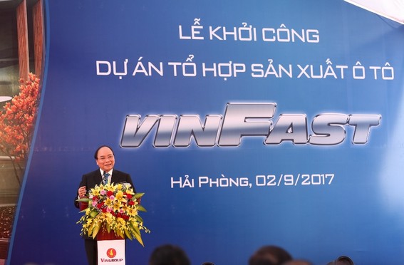 Thủ tướng Nguyễn Xuân Phúc phát biểu tại buổi lễ khởi công Dự án Tổ hợp sản xuất ô tô VINFAST