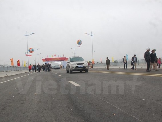Thông xe cầu vượt đường sắt Bắc Nam với Quốc lộ 1A. (Ảnh: Việt Hùng/Vietnam+)