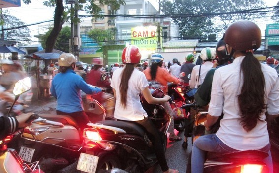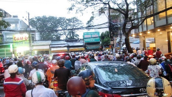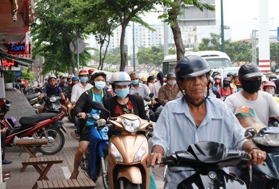 Ghi nhận tại các tuyến đường cạnh vành đai sẽ dự kiến sẽ thực hiện thu phí như Điện Biên Phủ, Nguyễn Thị Minh Khái, Trường Trinh vào giờ cao điểm từ 11-12h30 và từ 17-19h hằng ngày ở đây thường xuyên xảy ra tình trạng ùn tắc nghiêm trọng, các phương tiện phải nhích từng chút một. (Ảnh: Phước Thuận)