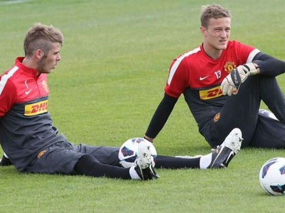 Anders Lindegaard (phải) không thể giành được vị trí của De Gea