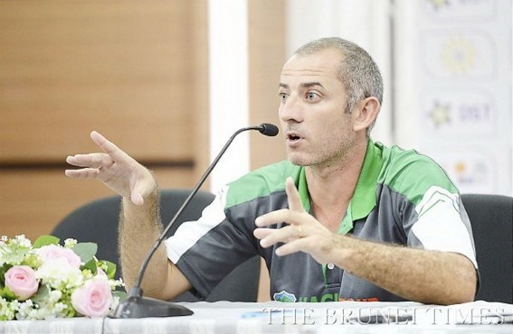 Huấn luyện viên Guillaume Graechen và các học trò chỉ còn cách chức vô địch đúng một chiến thắng. (Ảnh: Brunei Times)