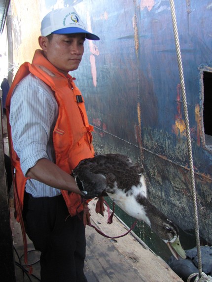Thả vịt vào khoang ballas để kiểm tra khí độc và con vịt chết ngay sau đó. Ảnh: Đ.H