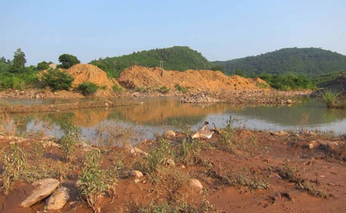 Cảnh tan hoang do khai thác vàng trên địa bàn xã Sa Lý Ảnh: Hà An