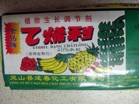 Loại hoá chất này ban đầu chỉ được các tiểu thương dùng cho một số quả, nhưng hiện tại, nó được sử dụng tràn lan từ chuối, xoài, đu đủ đến hồng ngâm, ổi, mít... bởi những lời lãi mà nó mang lại. Điều đáng nói, trên bao bì của tất cả các hộp thuốc này chỉ ghi hạn dùng hai năm kể từ ngày sản xuất, nhưng không hề có ngày sản xuất trên bao bì cũng như trên ống thuốc, chỉ có vài dòng chữ Trung Quốc.