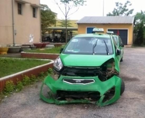 Chiếc xe taxi bị biến dạng và hư hỏng nặng