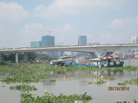Một số công nhân đang thi công công trình tại khu vực bờ sông cho rằng, việc bơm cát này là để đưa cát vào trong khu vực đường Trần Não, đường Lương Định Của phục vụ cho công tác thi công các công trình thuộc khu Đô thị mới Thủ Thiêm.